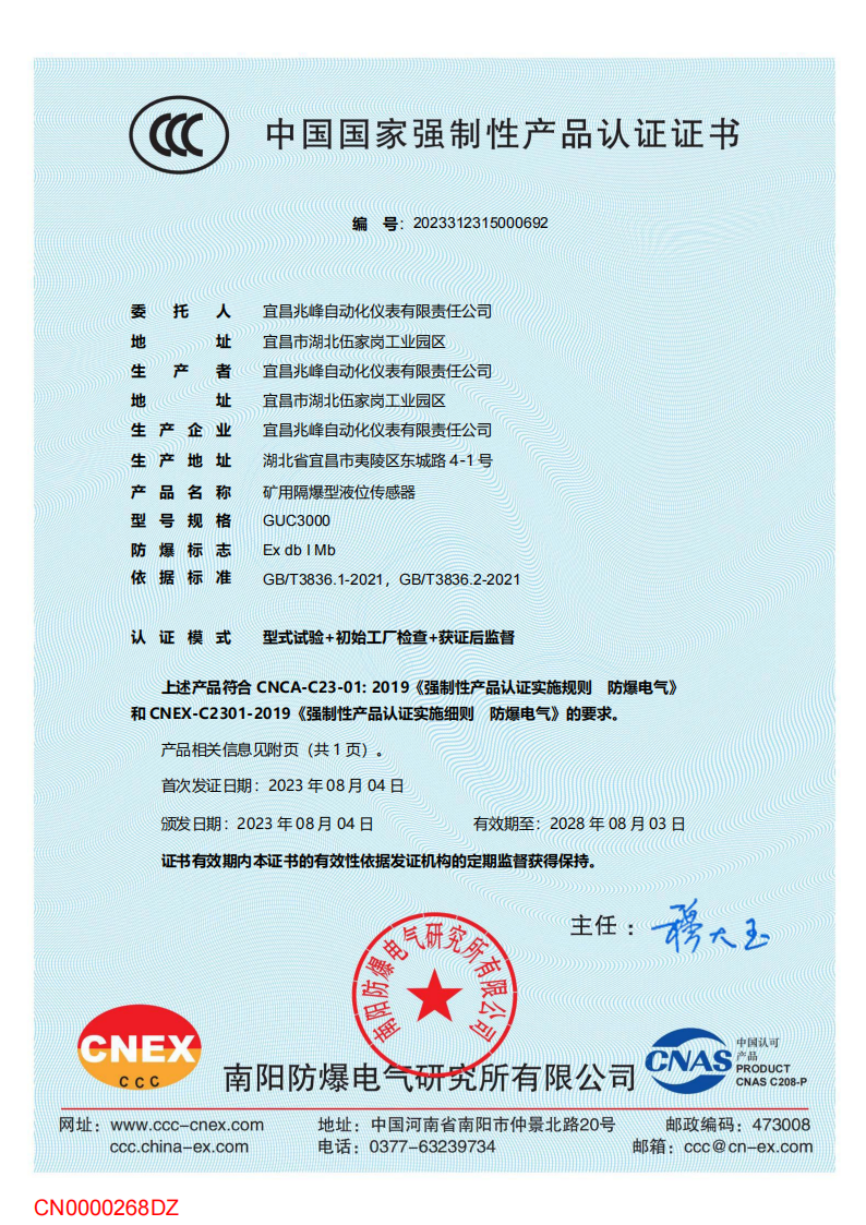 GUC3000 Датчик уровня взрывозащиты для горных работ_3C Сертификат